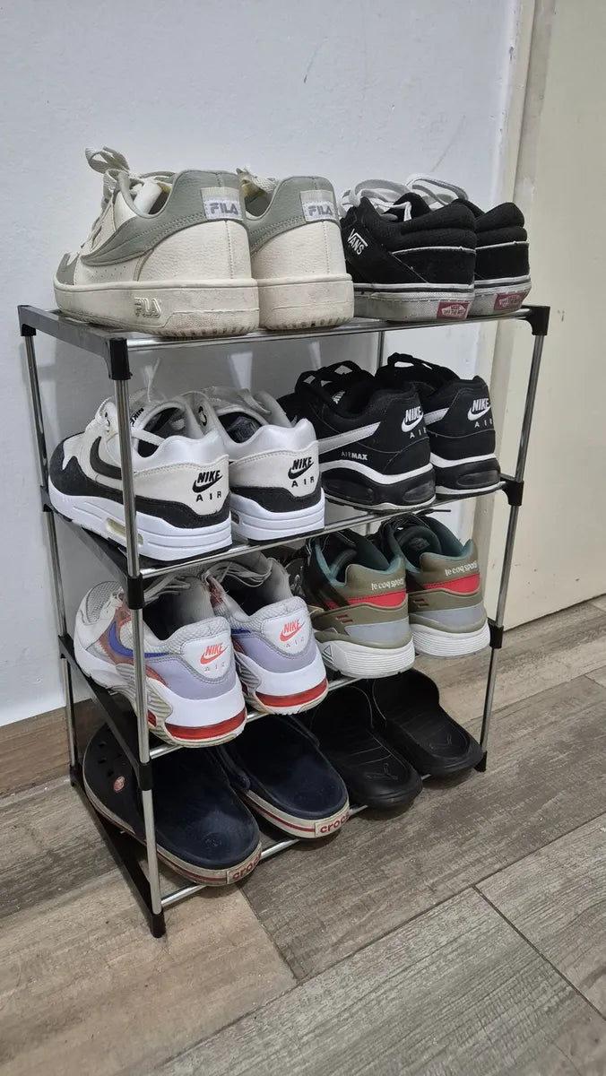 Nuestro organizador optimiza el espacio para albergar entre 8 y 10 pares. Las piezas grandes tienen su lugar, mientras que el calzado liviano permite una organización aún más densa y eficiente.